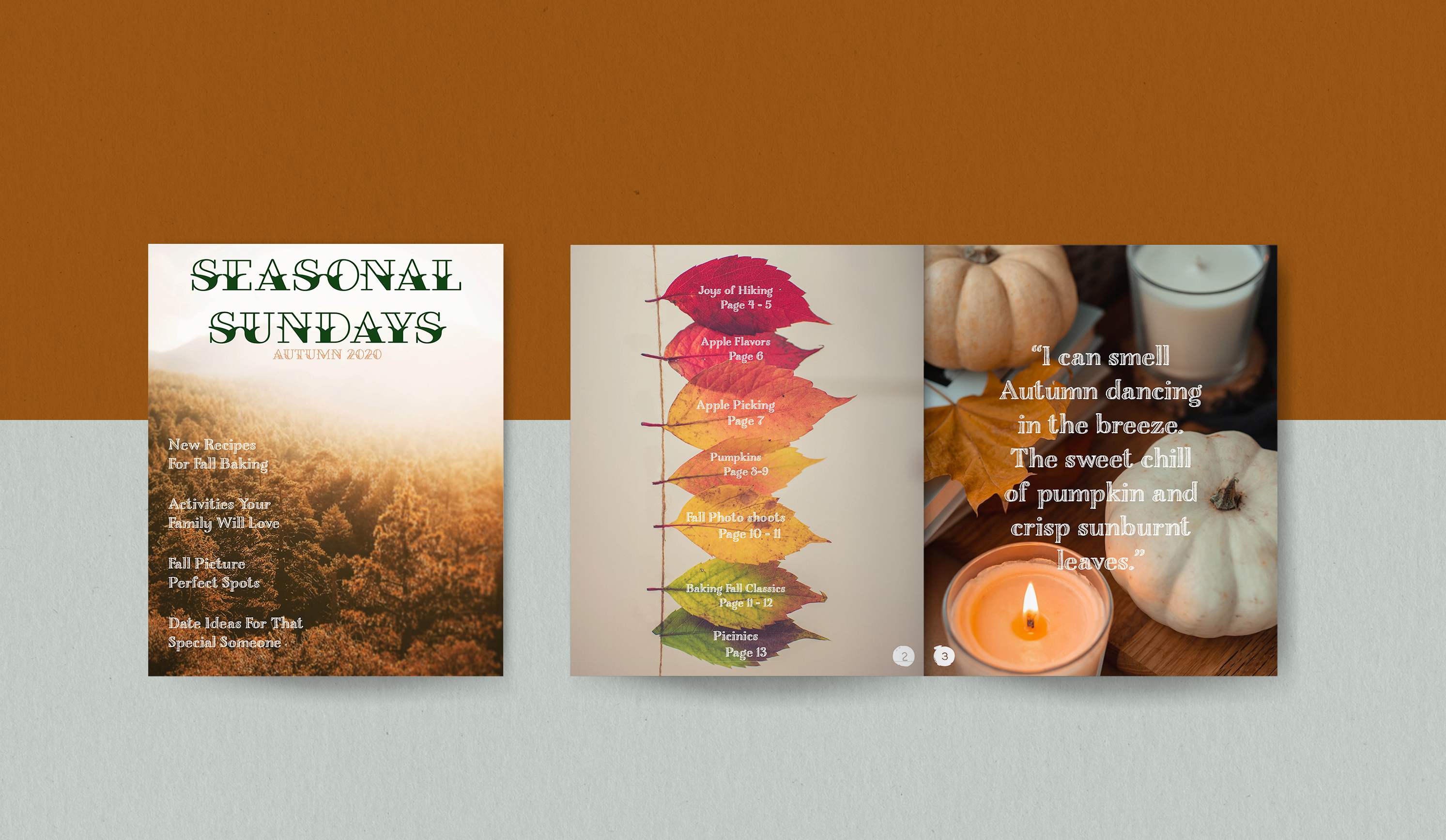 Here is a concept magazine I designed focusing on layouts, editorial design, and typography. Themed around the months of Autumn and activities readers might be drawn to.
